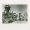 A print of a photograph taken during filming of the 1956 Walt Disney feature “The Great Locomotive Chase.” The reference print was produced in the studio, likely in the 1970s or 1980s, for a marketing or consumer products project. Measuring 8”x10” overall, the photo is in very good condition with minor minor discoloration, including yellowing at the photos edges, and minimal edge wear.