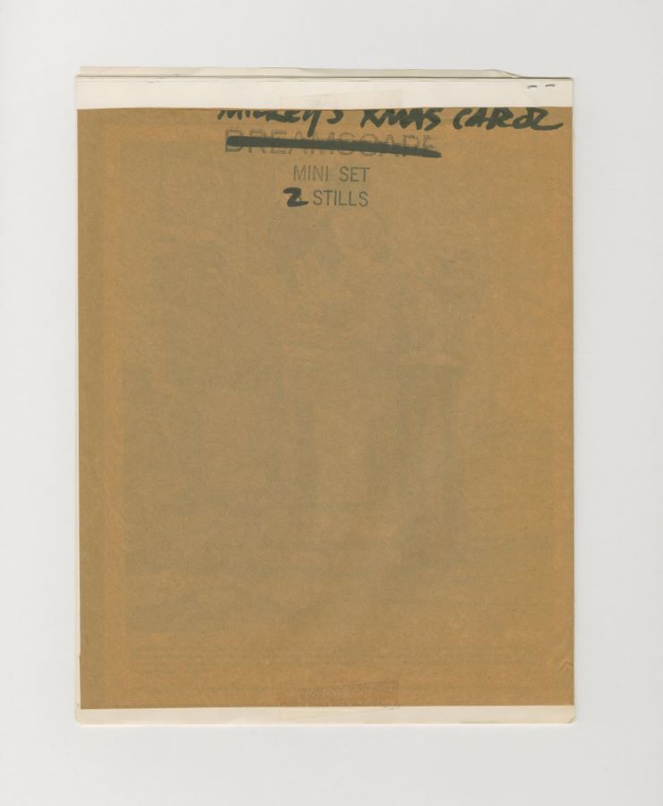 A press release and pair of promotional photographs from the Disney Studios animated classic "Mickey's Christmas Carol" (1983). The 12-page press release includes a cast and crew list, production information for the vocal talent, "the Disney Players: Who's Who in 'Mickey's Christmas Carol'," and the producer and director Burny Mattinson. The promotional photographs feature the Ghost of Christmas Future, Mickey Mouse as Bob Cratchit, and Scrooge McDuck as Ebenezer Scrooge. The 11"x8.5" press release and 10"x8" promotional photos are in very good condition light age and handling-related edge and corner wear, a deep crease and minimal tearing to the left top corner, minor discoloration, and graphite markings to the first page.